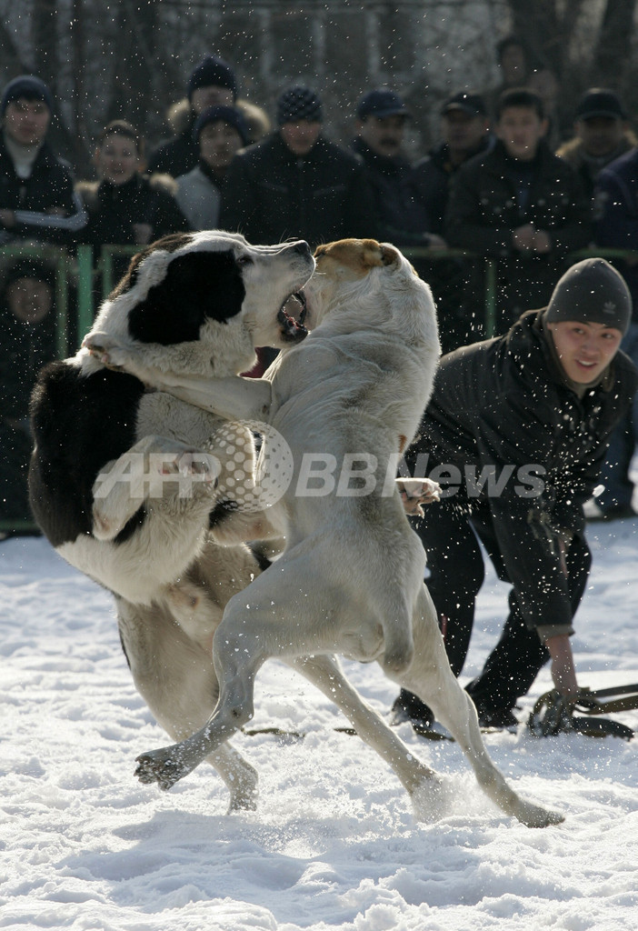 ニュース ライフ キルギスの闘犬大会 2009年1月19日 18:38 発信地:ビシケク/キルギス [ ロシア・CIS キルギス ] このニュースをシェア ‹ › ❮ 2/6 ❯ キルギスの首都ビシケク(Bishkek)で開催された闘犬大会の様子(2009年1月18日撮影)。(c)AFP/VYACHESLAV OSELEDKO 画像作成中 ! 【1月19日 AFP】キルギスの首都ビシケク(Bishkek)で18日、地元ブリーダー団体によって闘犬大会が開催され、50人近くの参加者が自慢の愛犬を披露した。(c)AFP ライフ 一覧へ> メディア・報道関係・法人の方向け 写真・動画 購入のお問合せ>