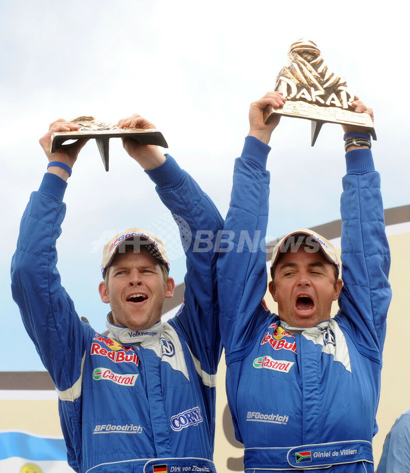 スポーツ モータースポーツ ダカールラリー2009が閉幕 2009年1月19日 16:24 発信地:ブエノスアイレス/アルゼンチン [ 中南米 アルゼンチン ] このニュースをシェア ‹ › ❮ 2/10 ❯ ダカールラリー2009(%%Dakar Rally 2009%%)四輪部門で総合優勝を果たし、最終日に行われたフィニッシュセレモニーでトロフィーを掲げるフォルクスワーゲン(%%Volkswagen%%)のジニール・ドゥビリエ(%%Giniel de Villiers%%、南アフリカ)とコ・ドライバーのディルク・フォン・ツィツェヴィッツ(%%Dirk Von Zitzewitz%%)。(2009年1月18日撮影)(c)AFP/Gabriel Bouys 画像作成中 ! 【1月18日 AFP】ダカールラリー2009(Dakar Rally 2009)のフィニッシュセレモニーが17日、ブエノスアイレス(Buenos Aires)で行われた。(c)AFP モータースポーツ 一覧へ> メディア・報道関係・法人の方向け 写真・動画 購入のお問合せ>