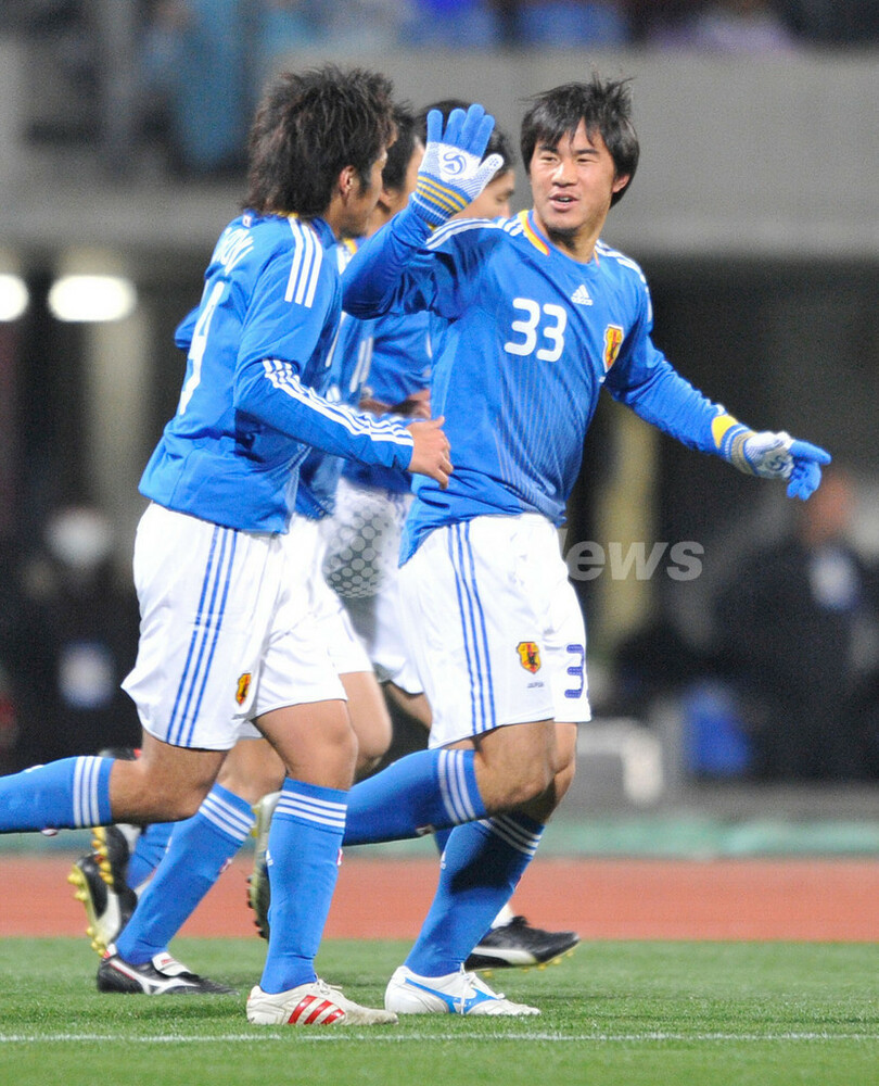 前半7分に岡崎慎司(Shinji Okazaki)のゴールで先制した日本は、後半2分にザヘル・ファリド(Zaher Mohammed Farid Al-Fadhli)のゴールで同点に追いつかれたが、後半21分に田中達也(Tatsuya Tanaka)がゴールを決めて勝ち越した。(c)AFP