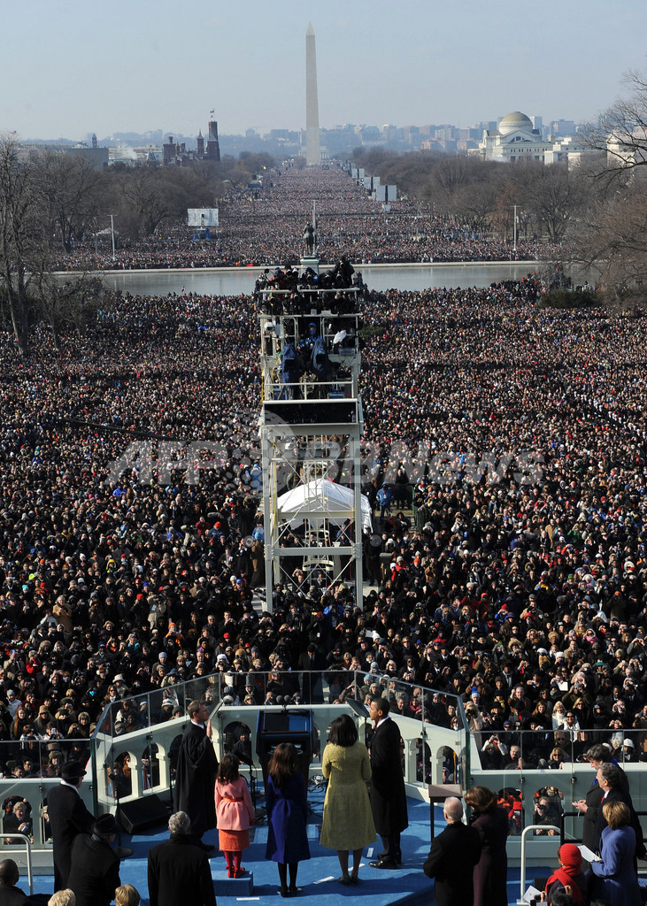 次期副大統領となるジョー・バイデン(Joe Biden)氏が宣誓を行った後、オバマ氏はジョン・ロバーツ(John Roberts)連邦最高裁長官の立ち会いの下、聖書に手を置き、「米国大統領の職務を忠実に遂行し、全力を尽くして合衆国憲法を維持し、守り、擁護することを厳粛に誓います」と宣誓し、第44代米大統領に就任した。オバマ新大統領はその後、集まった聴衆を前に就任演説を行った。