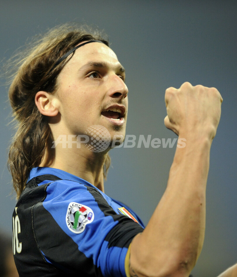 前半10分にアドリアーノ(Adriano)のゴールで先制したインテルは、後半16分にロドリゴ・タッディ(Rodrigo Taddei)にゴールを決めらて同点に追いつかれたが、同18分にズラタン・イブラヒモビッチ(Zlatan Ibrahimovic)がゴールを決めて勝ち越した。(c)AFP/Barnaby Chesterman