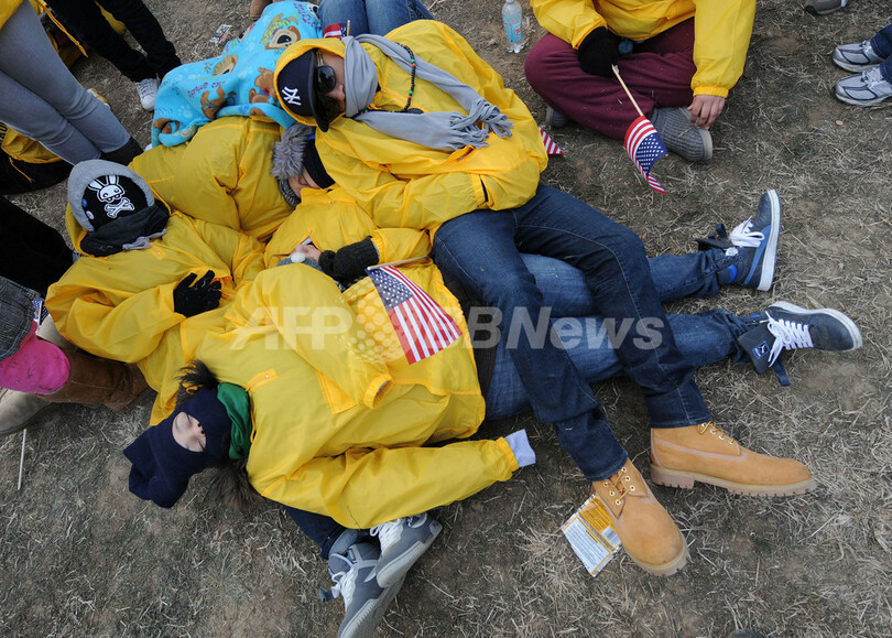 ニュース 政治・経済 オバマ新大統領の就任式、200万人が祝福 米国 2009年1月22日 22:04 発信地:ワシントンD.C./米国 [ 北米 米国 ] このニュースをシェア ‹ › ❮ 11/15 ❯ 米ワシントンD.C.(Washington D.C.)の連邦議会議事堂前のナショナルモール(National Mall)で、バラク・オバマ(Barack Obama)第44代米大統領の就任式開始まで、暖をとるため寄り添って仮眠する学生たち。式当日は、歴史的な瞬間を一目見ようと、全米各地から200万人あまりの人びとがワシントンD.Cを訪れた。(2009年1月20日撮影)(c)AFP/Mark RALSTON 画像作成中 ! 【1月22日 AFP】米国史上初のアフリカ系大統領となったバラク・オバマ(Barack Obama)大統領の就任式が20日、ワシントンD.C.(Washington D.C.)の連邦議会議事堂前で行われた。式当日は、歴史的な瞬間を一目見ようと、全米各地から200万人あまりの人びとがワシントンD.Cを訪れた。(c)AFP 政治・経済 一覧へ> メディア・報道関係・法人の方向け 写真・動画 購入のお問合せ>