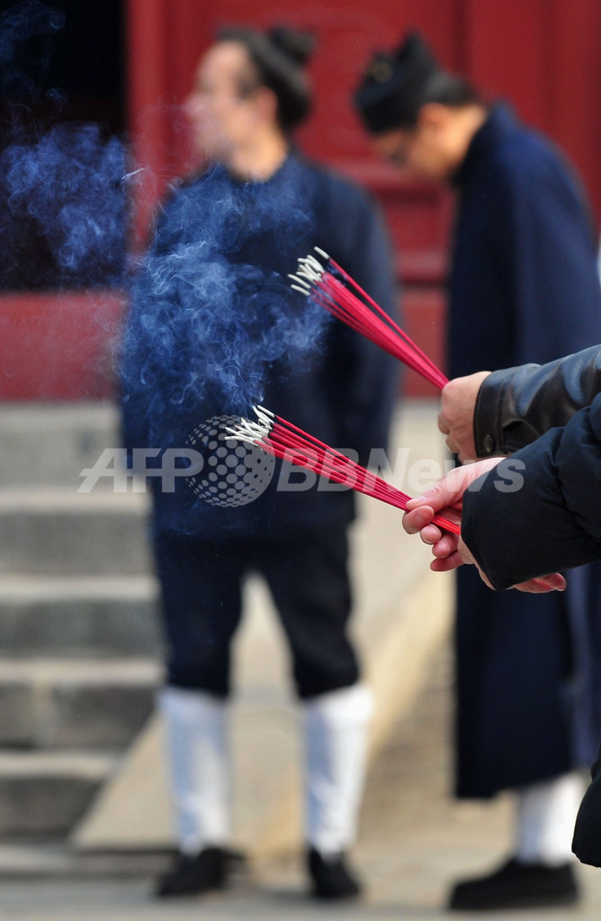 ニュース ライフ 春節をひかえた北京の道教寺院、白雲観 2009年1月24日 15:38 発信地:北京/中国 [ 中国・台湾 中国 ] このニュースをシェア ‹ › ❮ 4/5 ❯ 中国・北京(Beijing)の道教寺院、白雲観(Baiyunguan)で、散歩する道士と、参拝者が手に持つ線香。白雲観は中国北部で最も古い寺院の1つで、春節(旧正月)には大勢の人が訪れる。旧正月中の北京では、今日でも伝統的な縁日がにぎわいを見せる。(2009年1月21日撮影)。(c)AFP/Frederic J. BROWN 画像作成中 ! 【1月23日 AFP】中国・北京(Beijing)にある道教の寺院、白雲観(Baiyunguan)。中国北部で最も古い寺院の1つで、春節(旧正月)には大勢の人が訪れる。旧正月中の北京では、今日でも伝統的な縁日がにぎわいを見せる。(c)AFP ライフ 一覧へ> メディア・報道関係・法人の方向け 写真・動画 購入のお問合せ>