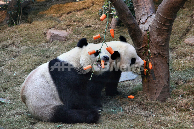 ニュース ライフ 春節前にごちそう味わう仲良しパンダ、香港 2009年1月23日 15:18 発信地:香港 このニュースをシェア ‹ › ❮ 2/2 ❯ 香港海洋公園(Ocean Park Hong Kong)で、26日の春節(旧正月)を前にニンジンと竹で出来た食事「firecrackers」を楽しむパンダの盈盈(Ying Ying)と楽楽(Le Le、2009年1月22日撮影)。(c)AFP/OCEAN PARK 画像作成中 ! 【1月23日 AFP】26日の春節(旧正月)を間近に控えた22日、香港海洋公園(Ocean Park Hong Kong)で、ニンジンと竹で出来た食事「firecrackers」を楽しむパンダの盈盈(Ying Ying)と楽楽(Le Le)。2頭は2007年に香港の中国返還10周年を記念し中国中央政府より寄贈された。(c)AFP ライフ 一覧へ> メディア・報道関係・法人の方向け 写真・動画 購入のお問合せ>