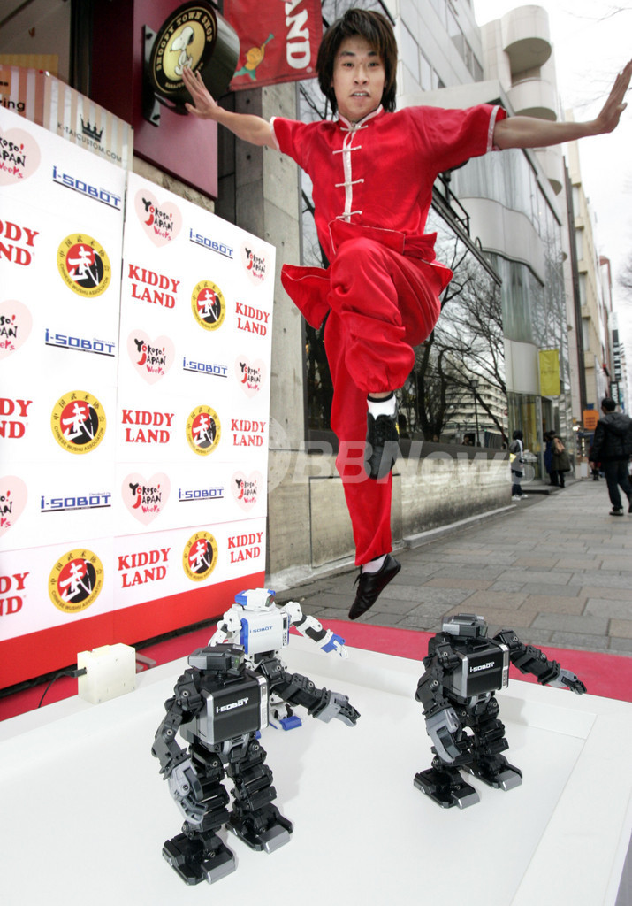 ニュース ライフ 世界最小ロボットと中国武術チャンピオン、華麗な舞を競演 2009年1月25日 9:31 発信地:東京 [ アジア・オセアニア 東京 ] このニュースをシェア ‹ › ❮ 5/5 ❯ 都内のキデイランド(Kiddyland)原宿店で、中国武術の舞を競演する呉澤人(Michael Wu)さんとタカラトミー(Tomy)製の世界最小人間型ロボットi-Sobot(2009年1月24日撮影)。(c)AFP/Yoshikazu TSUNO 画像作成中 ! 【1月25日 AFP】タカラトミー(Tomy)が開発した世界最小人間型ロボットi-Sobotと中国武術のチャンピオン呉澤人(Michael Wu)さんが24日、都内のキデイランド(Kiddyland)原宿店で、中国武術の舞を競演、観客を楽しませた。外国人を対象としたイベント「ビジット・ジャパン・キャンペーン」の一環。(c)AFP ライフ 一覧へ> メディア・報道関係・法人の方向け 写真・動画 購入のお問合せ>