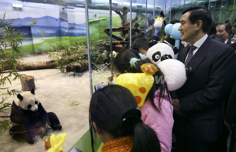 台湾で中国寄贈のパンダお披露目、馬総統も式典出席