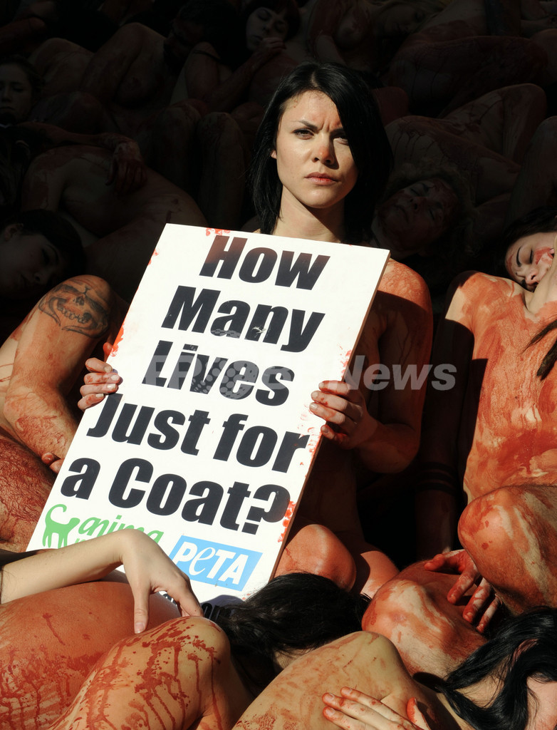 Anima Naturalis)」が、裸体で毛皮反対を訴えた。(c)AFP