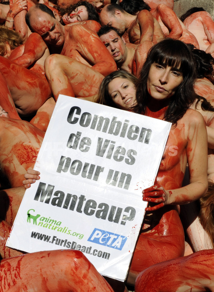 Anima Naturalis)」が、裸体で毛皮反対を訴えた。(c)AFP