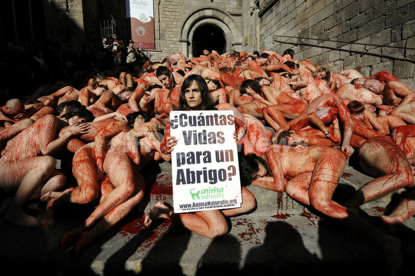 Anima Naturalis)」が、裸体で毛皮反対を訴えた。(c)AFP