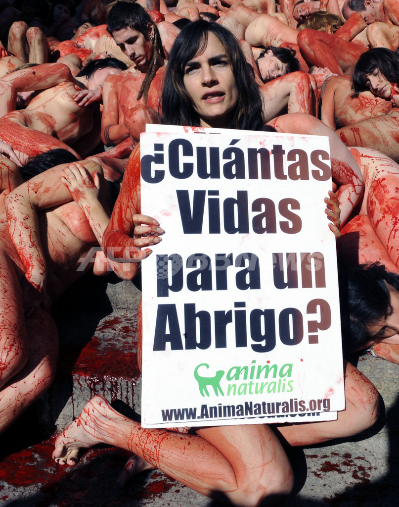 Anima Naturalis)」が、裸体で毛皮反対を訴えた。(c)AFP