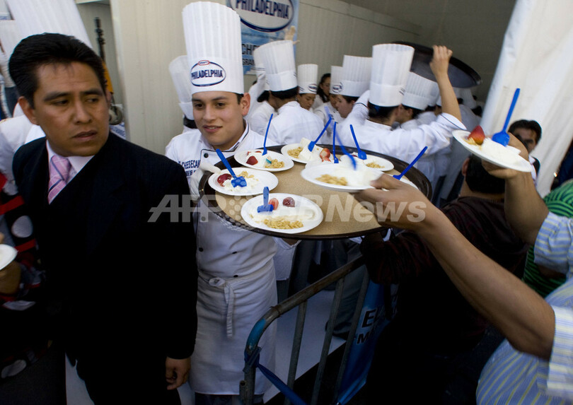 ニュース ライフ こぼれ話 ギネス認定の巨大なチーズケーキ、重さは2トン! 2009年1月26日 12:10 発信地:メキシコ市/メキシコ [ 中南米 メキシコ ] このニュースをシェア ‹ › ❮ 3/10 ❯ メキシコの首都メキシコ市(Mexico City)で、ギネス世界記録(Guinness Book of Records)認定の巨大チーズケーキを作り、人々にふるまう準備をするシェフ(2009年1月25日撮影)。(c)AFP/Luis Acosta 画像作成中 ! 【1月26日 AFP】メキシコの首都メキシコ市(Mexico City)で25日、メキシコ人シェフらが巨大なチーズケーキを作り、ギネス世界記録(Guinness Book of Records)に認定された。チーズケーキは直径2.5メートル、高さ55センチ、重さは2トンに上るという。完成後はおよそ2万人にふるまわれた。(c)AFP ライフ 一覧へ> メディア・報道関係・法人の方向け 写真・動画 購入のお問合せ>