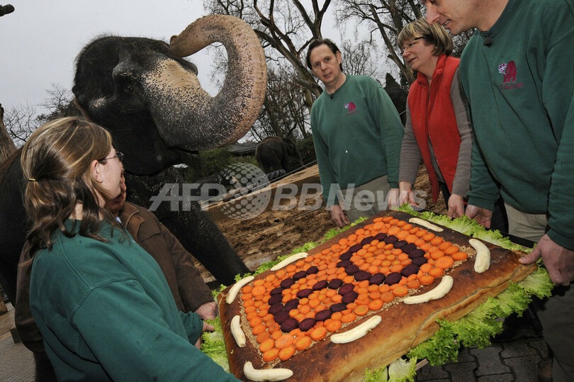 ニュース ライフ こぼれ話 ケーキでお祝い嬉しいゾウ 2009年1月26日 19:46 発信地:シュツットガルト/ドイツ [ ヨーロッパ ドイツ ] このニュースをシェア ‹ › ❮ 5/5 ❯ ドイツ南部シュツットガルト(Stuttgart)の動物園で、野菜と果物で出来たバースデーケーキを頬張る、欧州最高齢のゾウのVilja(2009年1月23日撮影)。(c)AFP/DDP/NIGEL TREBLIN 画像作成中 ! 【1月26日 AFP】ドイツ南部シュツットガルト(Stuttgart)の動物園で23日、ゾウのViljaに野菜と果物で出来たバースデーケーキがプレゼントされた。Viljaは欧州最高齢のゾウで、今月の24日で60歳になった。(c)AFP ライフ 一覧へ> メディア・報道関係・法人の方向け 写真・動画 購入のお問合せ>
