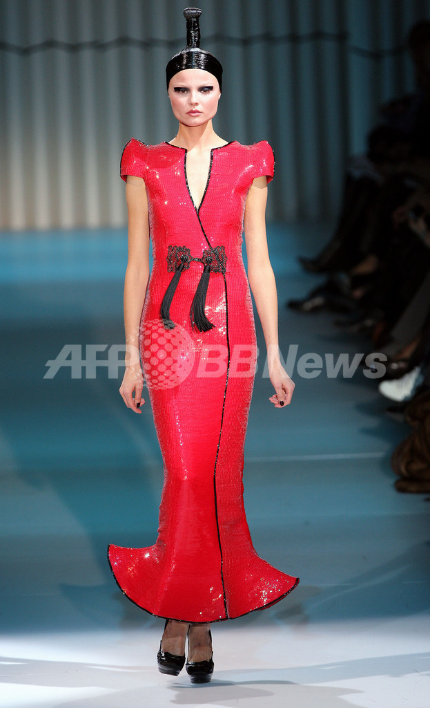 【1月27日 AFP】フランス・パリ市内で1月26日から28日まで09年春夏パリ・オートクチュールコレクションが開かれている。26日には、ジョルジオ・アルマーニ (Giorgio Armani)が手掛ける「アルマーニ・プリヴェ(Armani Prive)」が新作を発表した。(c)AFP