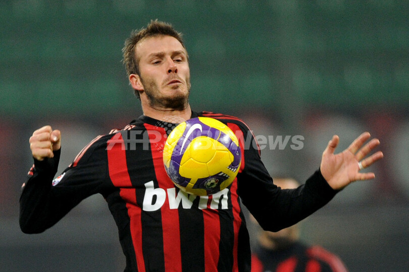 ミランは、4-1で勝利した25日のボローニャ(Bologna FC)戦で移籍後初得点を記録したデビッド・ベッカム(David Beckham)がフリーキック(FK)から直接ゴールを決めて先制するも、試合終了3分前にジェノアのディエゴ・ミリート(Diego Milito)に同点ゴールを許して勝利を逃し、首位インテル(Inter Milan)との勝ち点差は8に広がった。(c)AFP/Barnaby Chesterman