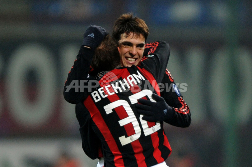 ミランは、4-1で勝利した25日のボローニャ(Bologna FC)戦で移籍後初得点を記録したデビッド・ベッカム(David Beckham)がフリーキック(FK)から直接ゴールを決めて先制するも、試合終了3分前にジェノアのディエゴ・ミリート(Diego Milito)に同点ゴールを許して勝利を逃し、首位インテル(Inter Milan)との勝ち点差は8に広がった。(c)AFP/Barnaby Chesterman