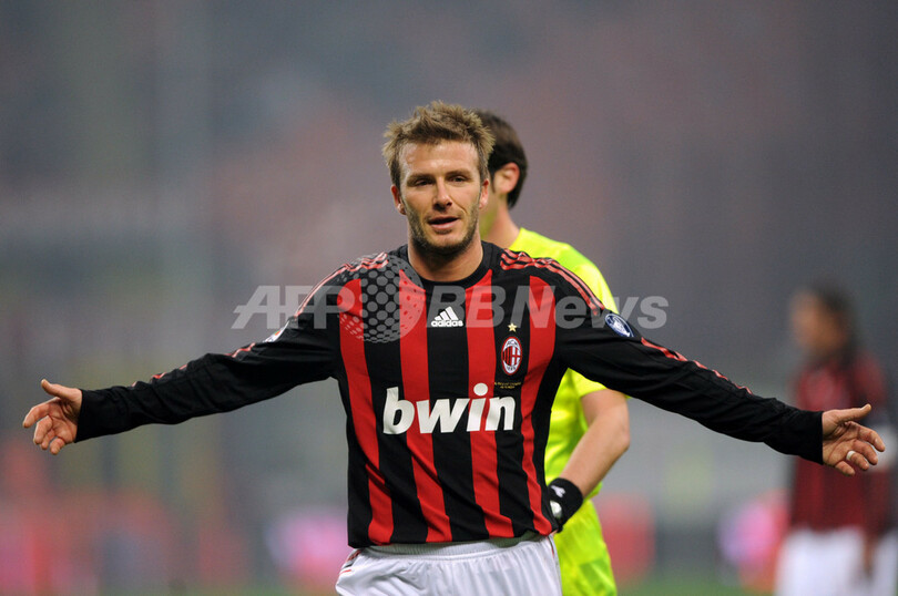 ミランは、4-1で勝利した25日のボローニャ(Bologna FC)戦で移籍後初得点を記録したデビッド・ベッカム(David Beckham)がフリーキック(FK)から直接ゴールを決めて先制するも、試合終了3分前にジェノアのディエゴ・ミリート(Diego Milito)に同点ゴールを許して勝利を逃し、首位インテル(Inter Milan)との勝ち点差は8に広がった。(c)AFP/Barnaby Chesterman