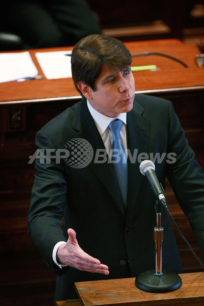 【1月30日 AFP】(写真追加)米イリノイ(Illinois)州議会は29日、バラク・オバマ(Barack Obama)米大統領の後任上院議員の指名をめぐる不正容疑で逮捕されたロッド・ブラゴジェビッチ(Rod Blagojevich)州知事の弾劾裁判で、59対0の満場一致で罷免を承認した。