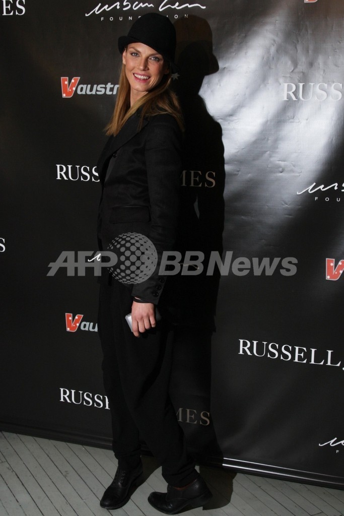 「ヘルムート・ラング(Helmut Lang)」のブラック・ミニドレス姿で登場したモデルのニコール・トルンフィオ(Nicole Trunfio)は、ジェームスとは友人で同じオーストラリア出身。「オーストラリアは、戦争や国際紛争などに参加しない世界で数少ない国の一つだと思う。私たちはとてもおおらかなんだけど、仕事をするとなるとアメリカに飛んでくるのよ」とコメントした。(c)Fashion Week Daily/MODE PRESS