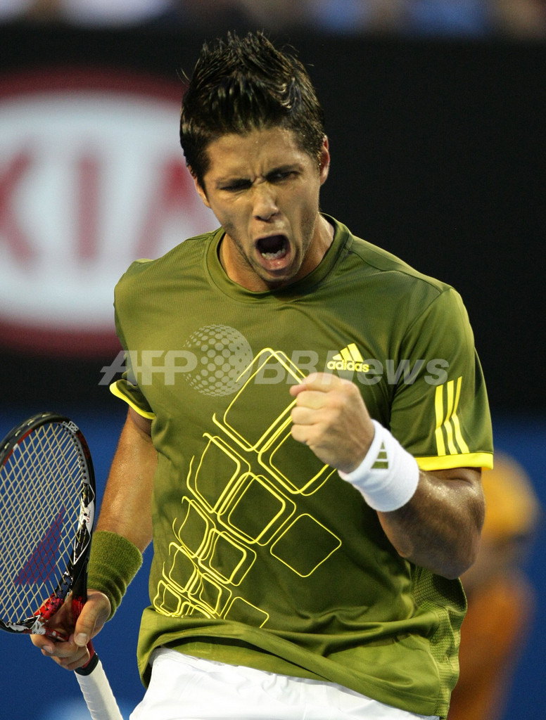 【1月31日 AFP】(写真追加、記事更新)全豪オープンテニス(Australian Open Tennis Tournament 2009)男子シングルス準決勝。大会第1シードのラファエル・ナダル(Rafael Nadal、スペイン)は、大会第14シードのフェルナンド・ベルダスコ(Fernando Verdasco、スペイン)と対戦。ナダルはセットカウント3-2(6-7、6-4、7-6、6-7、6-4)でベルダスコを下し、決勝進出を決めた。