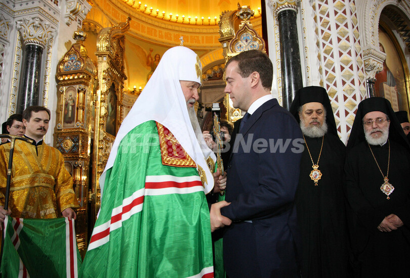 一方で、経済問題が深刻化し政府と教会との対立が表面化するような場合には、キリル総主教が政府方針に従うと政府は確信しているようだとも述べている。(c)AFP/Aexander Osipovich