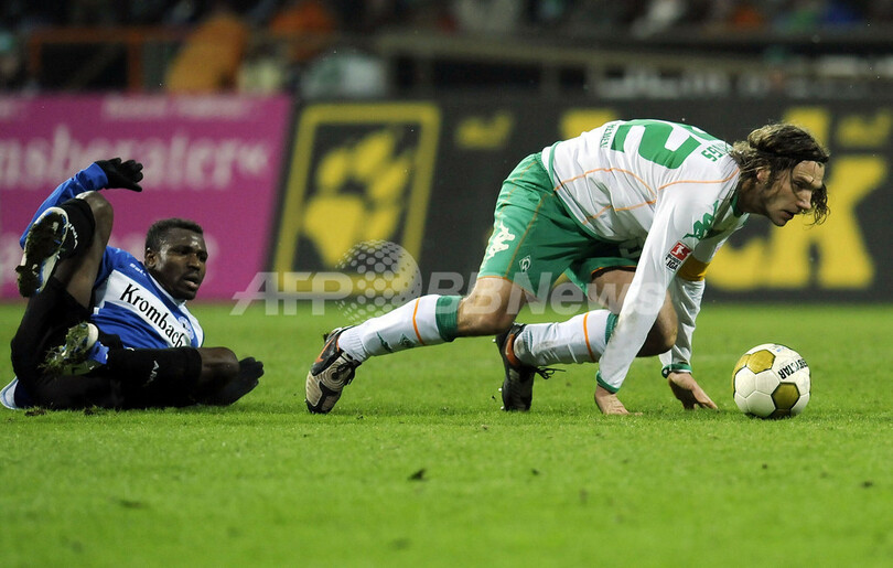 スポーツ サッカー ビーレフェルト アウェーでブレーメンに勝利 2009年2月2日 11:39 発信地:ブレーメン/ドイツ [ ヨーロッパ ドイツ ] このニュースをシェア ‹ › ❮ 4/6 ❯ アルミニア・ビーレフェルトのクリストファー・カトンゴ(%%Christopher Katongo%%、左)に競り勝つヴェルダー・ブレーメンのトルステン・フリンクス(%%Torsten Frings%%)。(2009年2月1日撮影)(c)AFP/DDP/DAVID HECKER 画像作成中 ! 【2月2日 AFP】08-09ドイツ・ブンデスリーガ1部第18節、ヴェルダー・ブレーメン(Werder Bremen)対アルミニア・ビーレフェルト(Arminia Bielefeld)。試合はアウェーのビーレフェルトが2-1でブレーメンを下した。(c)AFP サッカー 一覧へ> メディア・報道関係・法人の方向け 写真・動画 購入のお問合せ>