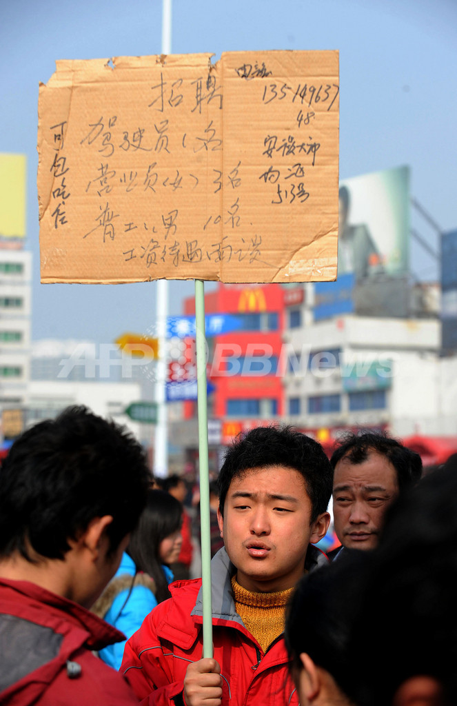 中国共産党の農村対策を担当する中央農村工作指導グループの陳錫文(Chen Xiwen)主任は「景気悪化のせいで、約2000万人の出稼ぎ労働者が失職したり、仕事を見つけられないまま、地方部へ帰郷した」と報道陣に説明した。戻った先の農村部などでは、収入となる仕事がないといい、陳氏は「これは今年の社会的安定を脅かす新たな要因だ」と指摘した。