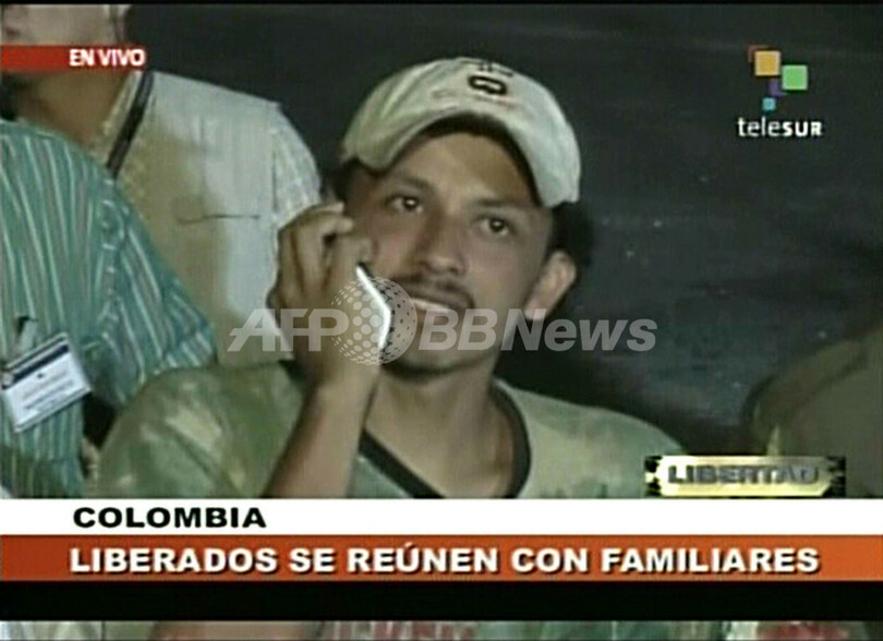 現在もFARCには350-700人の人質が拘束されていると推定されており、解放された兵士は残る人質の救出を強く呼びかけた。(c)AFP/Alexander Martinez