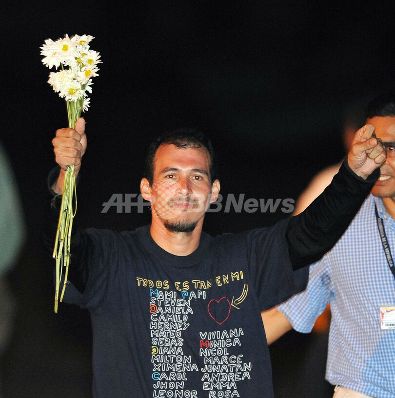 現在もFARCには350-700人の人質が拘束されていると推定されており、解放された兵士は残る人質の救出を強く呼びかけた。(c)AFP/Alexander Martinez