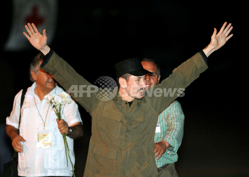 現在もFARCには350-700人の人質が拘束されていると推定されており、解放された兵士は残る人質の救出を強く呼びかけた。(c)AFP/Alexander Martinez