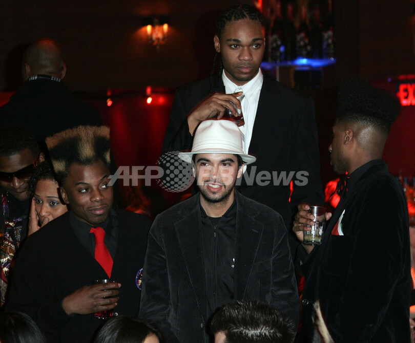 米ニューヨーク(New York)で、ラッパー/音楽プロデューサーのディディ(Diddy)ことショーン・コムズ(Sean Combs)とNBAロサンゼルス・レイカーズ(Los Angeles Lakers)のコービー・ブライアント(Kobe Bryant)選手が主催したパーティーに出席する、DJのキャシディー(Cassidy、中手前)と、The Retro Kidzのメンバーら(2009年2月2日撮影)。(c)AFP/Getty Images/Astrid Stawiarz