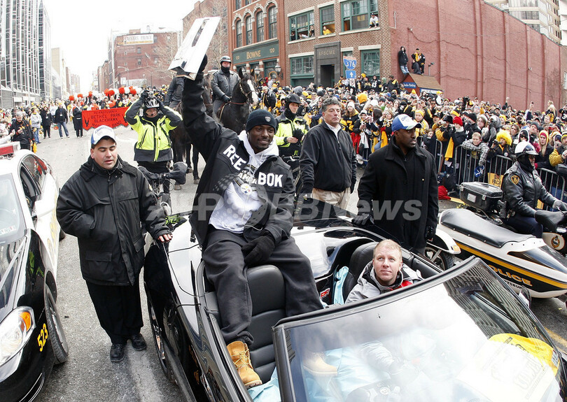 スポーツ アメリカンフットボール NFL王者スティーラーズが地元ピッツバーグで凱旋パレード 2009年2月4日 18:00 発信地:ピッツバーグ/米国 [ 北米 米国 ] このニュースをシェア ‹ › ❮ 1/13 ❯ 08NFL第43回スーパーボウル(%%Super Bowl XLIII%%)で史上最多となる6度目の栄冠を手にし、地元ピッツバーグ(Pittsburgh)で行われた凱旋パレードに参加するピッツバーグ・スティーラーズ(%%Pittsburgh Steelers%%)のサントニオ・ホームズ(%%Santonio Holmes%%)。(2009年2月3日撮影)(c)AFP/Getty Images/Gregory Shamus 画像作成中 ! 【2月4日 AFP】08NFL第43回スーパーボウル(Super Bowl XLIII)で史上最多となる6度目の栄冠を手にしたピッツバーグ・スティーラーズ(Pittsburgh Steelers)が3日、地元ピッツバーグ(Pittsburgh)で凱旋パレードを行った。(c)AFP/Getty Images アメリカンフットボール 一覧へ> メディア・報道関係・法人の方向け 写真・動画 購入のお問合せ>