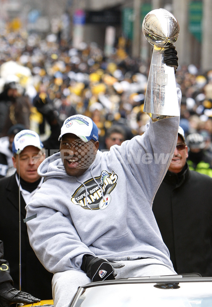 スポーツ アメリカンフットボール NFL王者スティーラーズが地元ピッツバーグで凱旋パレード 2009年2月4日 18:00 発信地:ピッツバーグ/米国 [ 北米 米国 ] このニュースをシェア ‹ › ❮ 9/13 ❯ 08NFL第43回スーパーボウル(%%Super Bowl XLIII%%)で史上最多となる6度目の栄冠を手にし、地元ピッツバーグ(Pittsburgh)で行われた凱旋パレードに参加するピッツバーグ・スティーラーズ(%%Pittsburgh Steelers%%)のジェームズ・ハリソン(%%James Harrison%%)。(2009年2月3日撮影)(c)AFP/Getty Images/Gregory Shamus 画像作成中 ! 【2月4日 AFP】08NFL第43回スーパーボウル(Super Bowl XLIII)で史上最多となる6度目の栄冠を手にしたピッツバーグ・スティーラーズ(Pittsburgh Steelers)が3日、地元ピッツバーグ(Pittsburgh)で凱旋パレードを行った。(c)AFP/Getty Images アメリカンフットボール 一覧へ> メディア・報道関係・法人の方向け 写真・動画 購入のお問合せ>