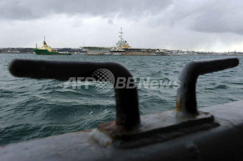 仏海軍の誇りとして知られた空母クレマンソー、通称「Hull Q790」は、灰色に汚れた船体を8隻の曳航(えいこう)船にけん引され、フランス北西部の軍港ブレスト(Brest)を出航した。
