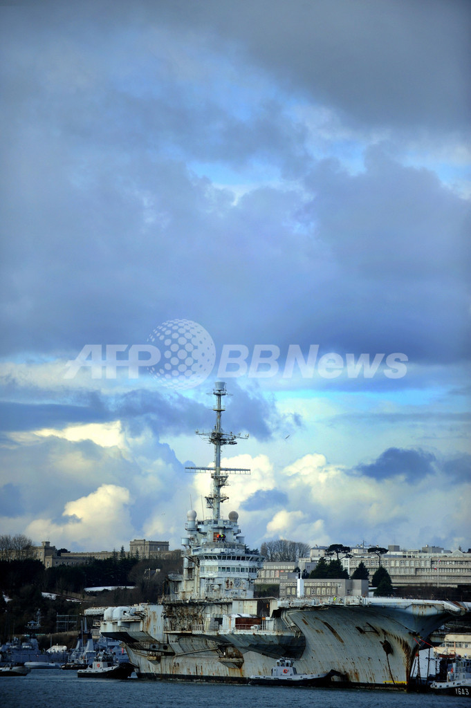 仏海軍の誇りとして知られた空母クレマンソー、通称「Hull Q790」は、灰色に汚れた船体を8隻の曳航(えいこう)船にけん引され、フランス北西部の軍港ブレスト(Brest)を出航した。