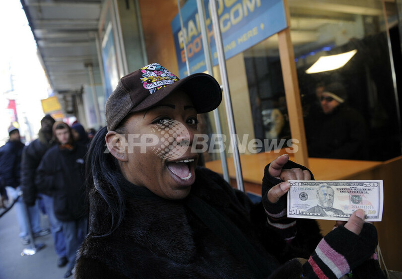 【2月5日 AFP】(写真追加)彼は名前も名乗らないし、顔も見せない。ただニューヨーク(New York)の真ん中で人びとに現金を渡すだけ――。ニューヨーク・タイムズスクエア(Times Square)で4日、「ベイルアウト・ビル(『救済家ビル』、Bailout Bill)」なる人物が登場し、「救済ブース(Bailout Booth)」と名付けられたブースの中から人びとに現金を配った。