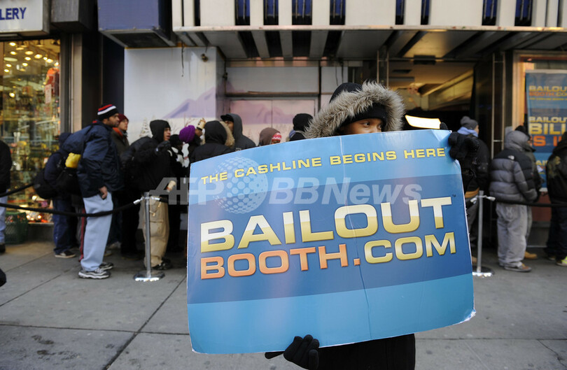 ベイルアウト・ビルは、黒いサングラスをかけ、ニットキャップを目深にかぶり、人びとに最低50ドル(約4500円)、時にはもっと高額の現金を手渡す。ニューヨークは4日、気温0度を下回る寒さだったが、ブースの前には数百人が列をつくり、5時間以上も並ぶ人も出た。多くは景気悪化の影響を受けた人びとだ。一連の経済危機で、ニューヨークだけでも数万人が職を失っている。