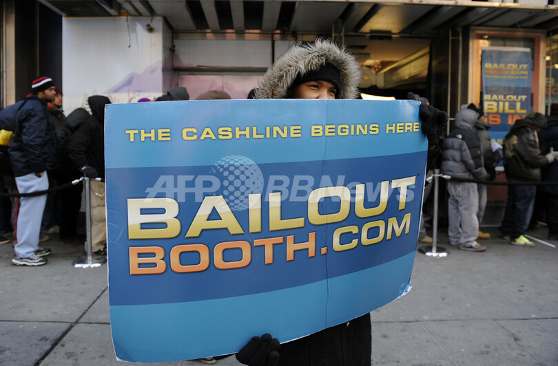 ベイルアウト・ビルは、黒いサングラスをかけ、ニットキャップを目深にかぶり、人びとに最低50ドル(約4500円)、時にはもっと高額の現金を手渡す。ニューヨークは4日、気温0度を下回る寒さだったが、ブースの前には数百人が列をつくり、5時間以上も並ぶ人も出た。多くは景気悪化の影響を受けた人びとだ。一連の経済危機で、ニューヨークだけでも数万人が職を失っている。