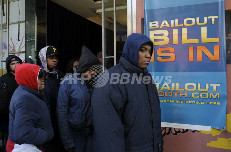 ベイルアウト・ビルは、黒いサングラスをかけ、ニットキャップを目深にかぶり、人びとに最低50ドル(約4500円)、時にはもっと高額の現金を手渡す。ニューヨークは4日、気温0度を下回る寒さだったが、ブースの前には数百人が列をつくり、5時間以上も並ぶ人も出た。多くは景気悪化の影響を受けた人びとだ。一連の経済危機で、ニューヨークだけでも数万人が職を失っている。