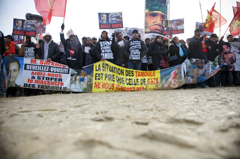 ニュース 戦争・紛争 パリでタミル人1万人がデモ、スリランカ軍によるLTTE攻撃に抗議 2009年2月5日 8:35 発信地:パリ/フランス [ ヨーロッパ フランス ] このニュースをシェア ‹ › ❮ 8/11 ❯ パリ(Paris)で4日、スリランカ軍による、同国の反政府勢力「タミル・イーラム解放のトラ(The Liberation Tigers of Tamil Eelam、LTTE)」の拠点に対する攻撃に抗議し、約1万人のタミル人が抗議デモを行った。写真は抗議デモの参加者(2009年2月4日撮影)。(c)AFP/Martin Bureau 画像作成中 ! 【2月5日 AFP】パリ(Paris)で4日、スリランカ軍による、同国の反政府勢力「タミル・イーラム解放のトラ(The Liberation Tigers of Tamil Eelam、LTTE)」の拠点に対する攻撃に抗議し、約1万人のタミル人が抗議デモを行った。(c)AFP 戦争・紛争 一覧へ> メディア・報道関係・法人の方向け 写真・動画 購入のお問合せ>