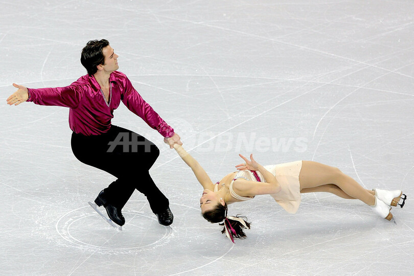 フィギュアスケート四大陸選手権2009(%%ISU Four Continents Figure Skating Championships 2009%%)ペア・ショートプログラム(SP)、64.36点を記録し2位につけたカナダのジェシカ・デュベ(%%Jessica Dube%%、右)とブライス・ダヴィソン(%%Bryce Davison%%)。(2009年2月4日撮影)(c)AFP/Getty Images/Matthew Stockman