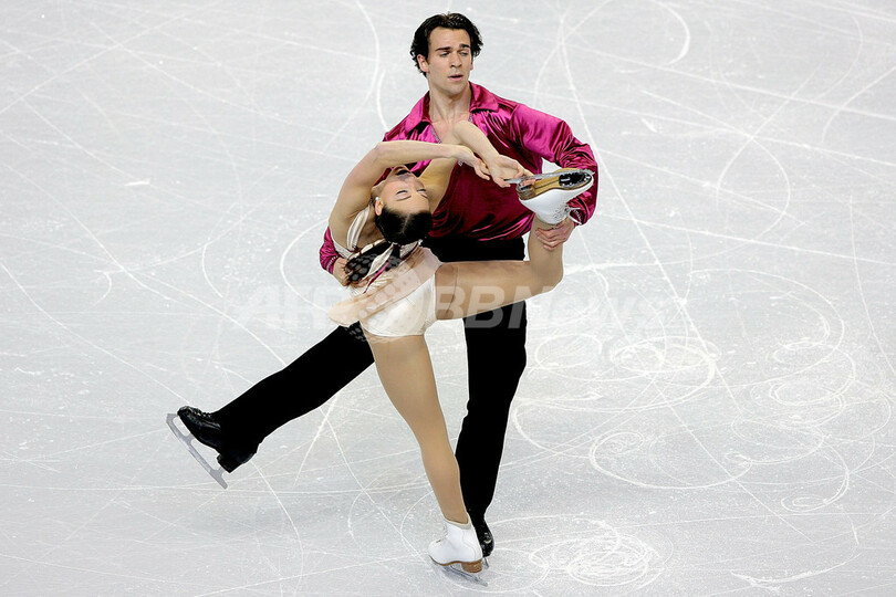 フィギュアスケート四大陸選手権2009(%%ISU Four Continents Figure Skating Championships 2009%%)ペア・ショートプログラム(SP)、64.36点を記録し2位につけたカナダのジェシカ・デュベ(%%Jessica Dube%%、左)とブライス・ダヴィソン(%%Bryce Davison%%)。(2009年2月4日撮影)(c)AFP/Getty Images/Matthew Stockman
