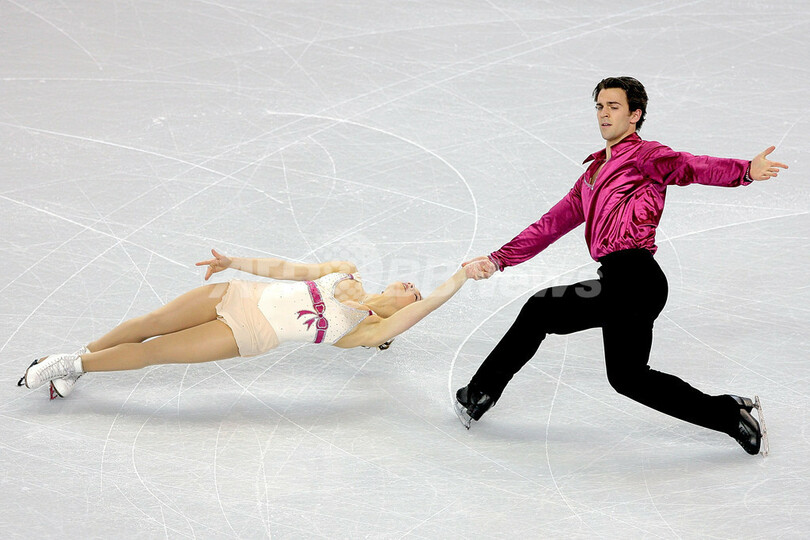 フィギュアスケート四大陸選手権2009(%%ISU Four Continents Figure Skating Championships 2009%%)ペア・ショートプログラム(SP)、64.36点を記録し2位につけたカナダのジェシカ・デュベ(%%Jessica Dube%%、左)とブライス・ダヴィソン(%%Bryce Davison%%)。(2009年2月4日撮影)(c)AFP/Getty Images/Matthew Stockman