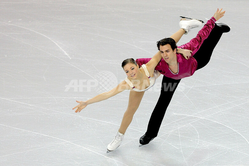 フィギュアスケート四大陸選手権2009(%%ISU Four Continents Figure Skating Championships 2009%%)ペア・ショートプログラム(SP)、64.36点を記録し2位につけたカナダのジェシカ・デュベ(%%Jessica Dube%%、左)とブライス・ダヴィソン(%%Bryce Davison%%)。(2009年2月4日撮影)(c)AFP/Getty Images/Matthew Stockman