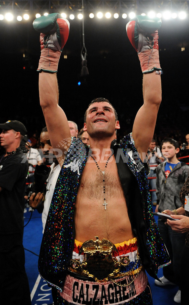 2007年11月に行われたミッケル・ケスラー(Mikkel Kessler)との対戦で判定勝ちを収めたカルザゲは、WBO、WBA、WBCそれぞれのスーパーミドル級タイトルを獲得し、同級の世界最強の座を手にしていた。(c)AFP