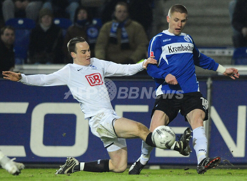 スポーツ サッカー ヘルタ・ベルリン アウェーでビーレフェルトと引き分ける 2009年2月7日 10:00 発信地:ビーレフェルト/ドイツ [ ヨーロッパ ドイツ ] このニュースをシェア ‹ › ❮ 3/6 ❯ ビーレフェルトのアルトゥル・ヴィフニャレク(%%Artur Wichniarek%%、右)にスライディングタックルを仕掛けるヘルタ・ベルリンのスティーヴ・フォン・ベルゲン(%%Steve Von Bergen%%)。(2009年2月6日撮影)(c)AFP/DDP/PHILIPP GUELLAND 画像作成中 ! 【2月7日 AFP】08-09ドイツ・ブンデスリーガ1部第19節、アルミニア・ビーレフェルト(Arminia Bielefeld)対ヘルタ・ベルリン(Hertha Berlin)。試合は1-1の引き分けに終わった。(c)AFP サッカー 一覧へ> メディア・報道関係・法人の方向け 写真・動画 購入のお問合せ>