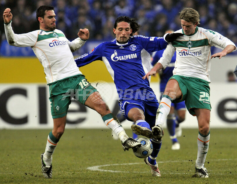 スポーツ サッカー シャルケ04 ヴェルダー・ブレーメンに勝利 2009年2月8日 9:18 発信地:ゲルゼンキルヘン/ドイツ [ ヨーロッパ ドイツ ] このニュースをシェア ‹ › ❮ 2/6 ❯ ヴェルダー・ブレーメンのアレクサンドロス・ジオリス(%%Alexandros Tziolis%%)、ペーテル・ニーメイアー(%%Peter Niemeyer%%)とボールを競るシャルケ04のケヴィン・クラニー(%%Kevin Kuranyi%%)。(2009年2月7日撮影)(c)AFP/DDP/DAVID HECKER 画像作成中 ! 【2月8日 AFP】08-09ドイツ・ブンデスリーガ1部第19節、シャルケ04(Schalke04)対ヴェルダー・ブレーメン(Werder Bremen)。試合はシャルケ04が1-0でヴェルダー・ブレーメンを下した。(c)AFP サッカー 一覧へ> メディア・報道関係・法人の方向け 写真・動画 購入のお問合せ>