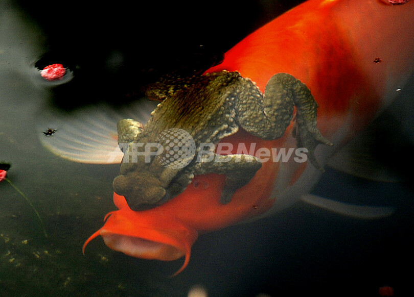 ニュース 環境・科学 ニシキゴイを愛したヒキガエル、台湾 2009年2月8日 11:54 発信地:台東/台湾 [ 中国・台湾 台湾 ] このニュースをシェア ‹ › ❮ 2/2 ❯ 台湾南部台東(Taitung)県の養魚場で、ニシキゴイの頭にへばりついた発情期とみられるヒキガエルの一種。(c)AFP/TSAI Cheng-Ming 画像作成中 ! 【2月8日 AFP】台湾南部台東(Taitung)県の養魚場で、ニシキゴイの頭にへばりついたヒキガエルの一種。発情期だとみられる。ニシキゴイと養魚場主はすでに1か月もヒキガエルを引き剥がそうと努力しているが成功していない。このままではニシキゴイが死んでしまうおそれもある。(c)AFP 環境・科学 一覧へ> メディア・報道関係・法人の方向け 写真・動画 購入のお問合せ>