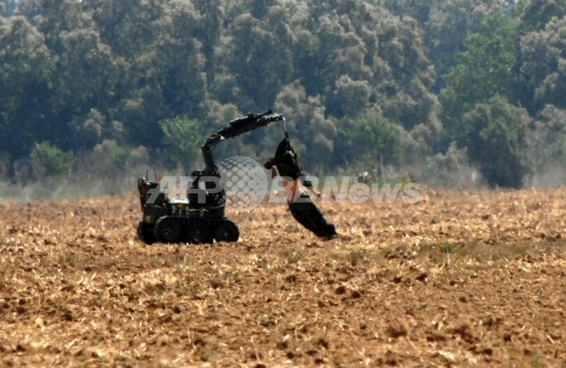 イスラエル南部・Netiv Haasaraで、射殺したパレスチナ人武装兵の死体を運ぶ工兵ロボット(2007年8月25日撮影)(c)AFP/DAVID BUIMOVITCH