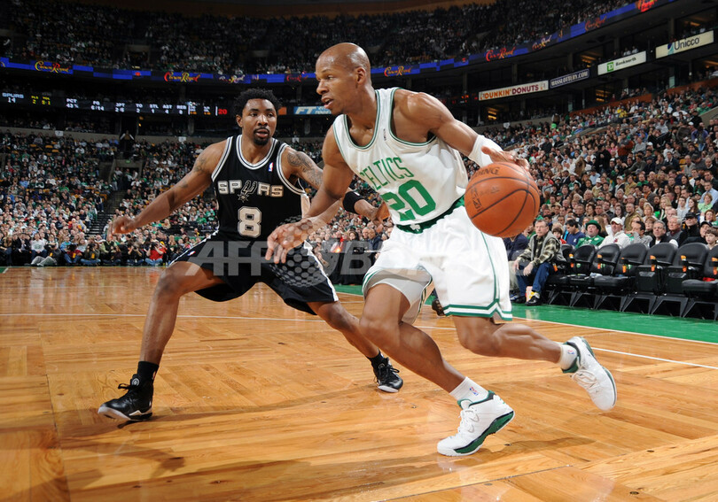 【2月9日AFP】08-09NBA、ボストン・セルティックス(Boston Celtics)対サンアントニオ・スパーズ(San Antonio Spurs)。試合はスパーズが105-99でセルティックスから勝利を収めた。