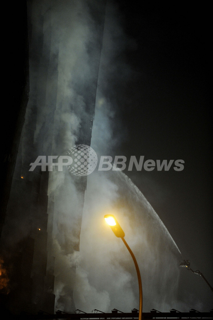 新華社は当初、目撃者の話として、打ち上げ花火がビルの屋上に落ち、出火したと伝えていた。(c)AFP